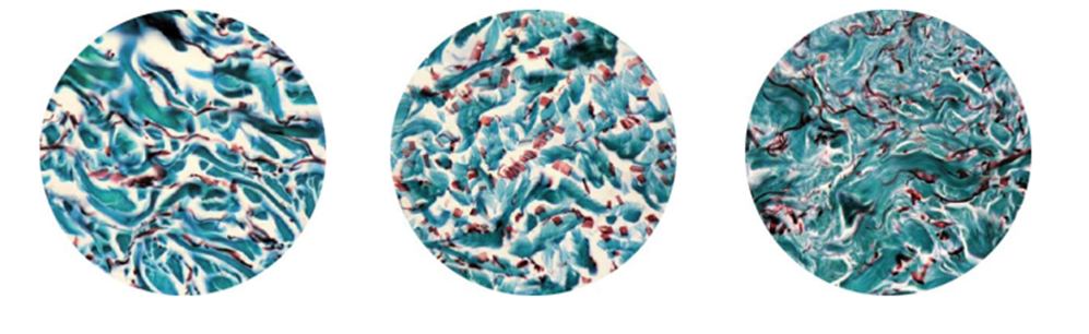 Szövettani metszetek: Egészséges bőr | kortizonnal kezelt stresszes bőr | kurkuma metabolommal kezelt stresszes bőr - Arcmasszázs lipozselé 30 ml: (A professzionális kit része) Lipofil zselé kókuszolajjal, shea vajjal és Zanthoxylum kivonattal, amely lehetővé teszi a szelíd, de hatékony masszázst az innovatív "zselé ecset" segítségével.